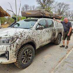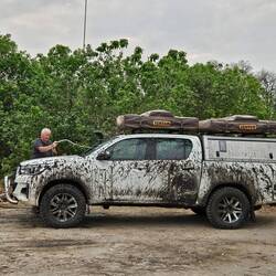 Wenn das Team am Kwai campsite hängen bleibt, ist Alfred sofort zur Stelle. Lustig hatten es alle ... Sommer Reifen, aalglatt ... eher Slicks ... oh mei