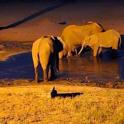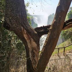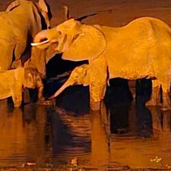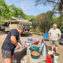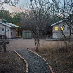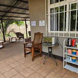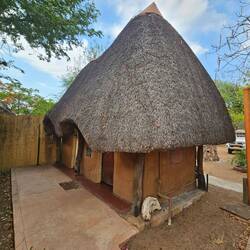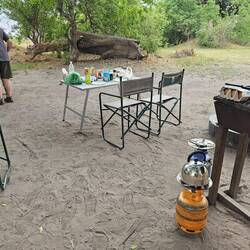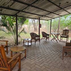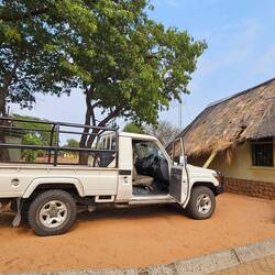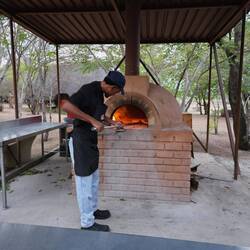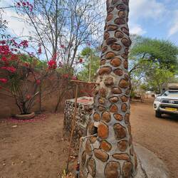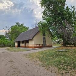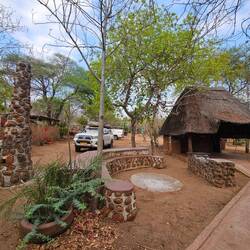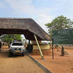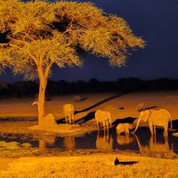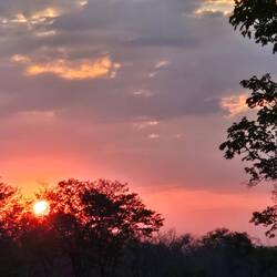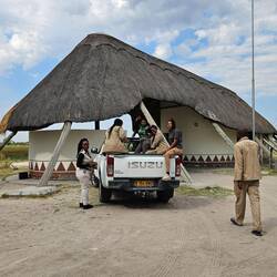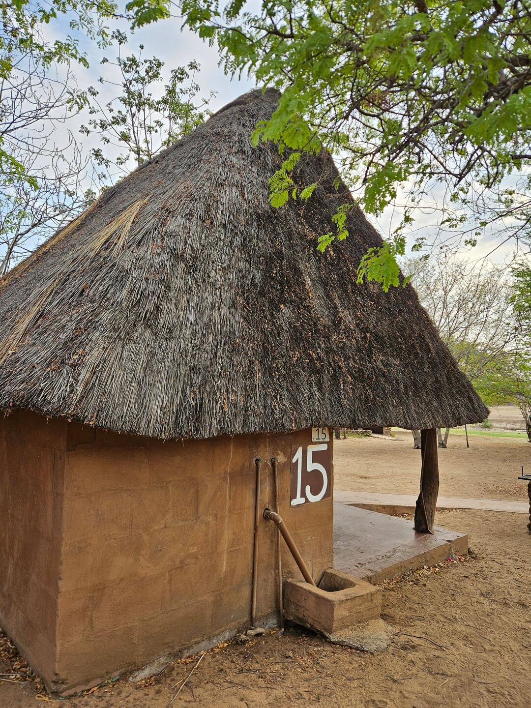 Wunderschönes, weitläufiges Camp am Wasserloch. Fröhliche Mitarbeiter, tolles Essen ... Morgen geht's per Bus ab hier zu den Victoria Fällen nach Simbabwe.