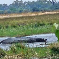Das ist fast nicht zu glauben ... vielen km staubige Sandstrasse und dann dieser See voll mit unzähligen Flusspferden. Rundherum grasen viele andere Tierarten, Vögel ohe Ende . . Wow wow