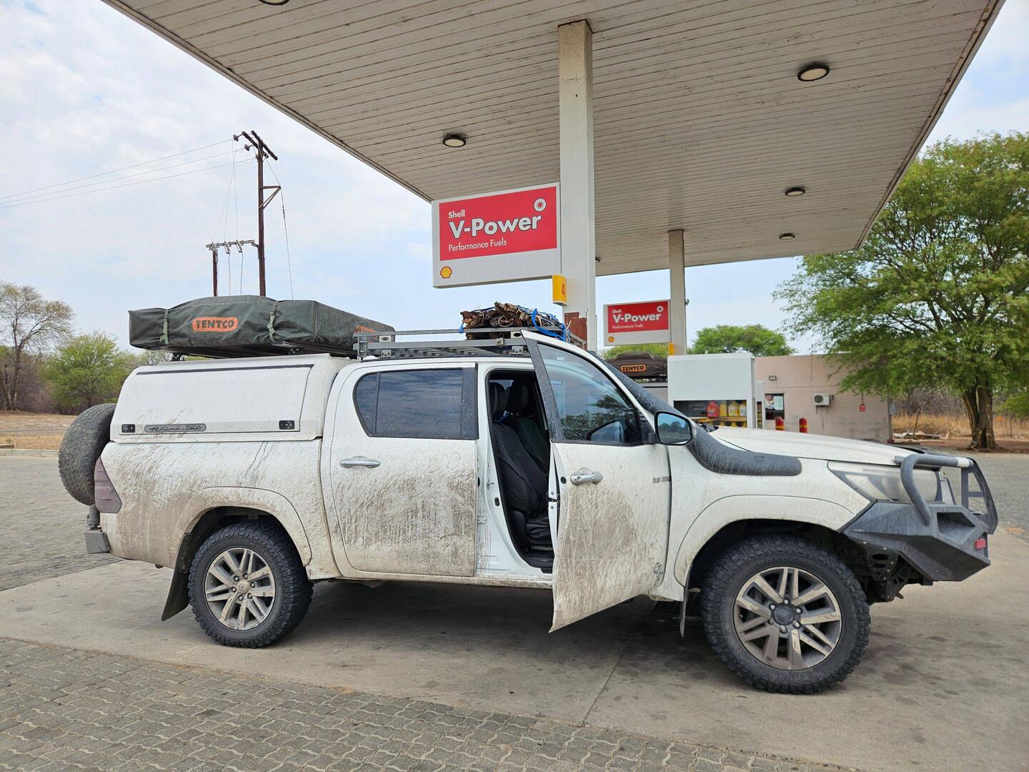 In Muchenje gibt's eine neue Tankstelle. Unterwegs wurde immer wieder gesagt, daß erst in Kasane Diesel zu haben ist. Jetzt sind alle relaxed.