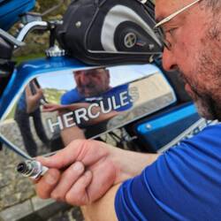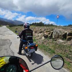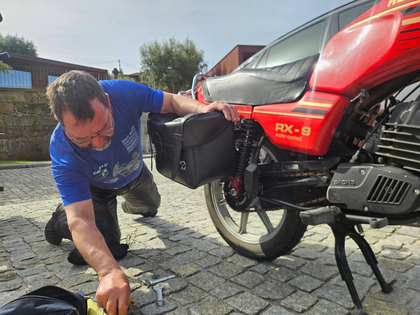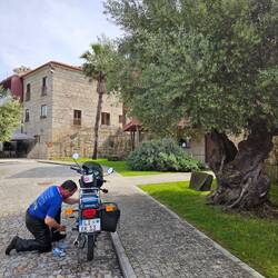 Geschweißt von einem Motorrad Kollegen irgendwo in den Hügeln in den Steinbrüchen. Alfred hat ihn wieder eingebaut, ich habe am Hotel gewartet ... und weiter geht's 😀