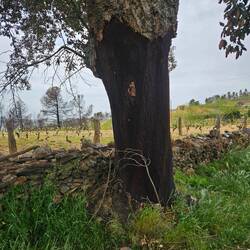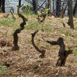 Verbrannte Weinreben säumen die Strasse kilometerweit ...