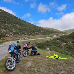 Bei der Kaffee Pause wilde Typen getroffen. Ständer werden überbewertet... gibt auch Hauswände zum Anlehnen.
