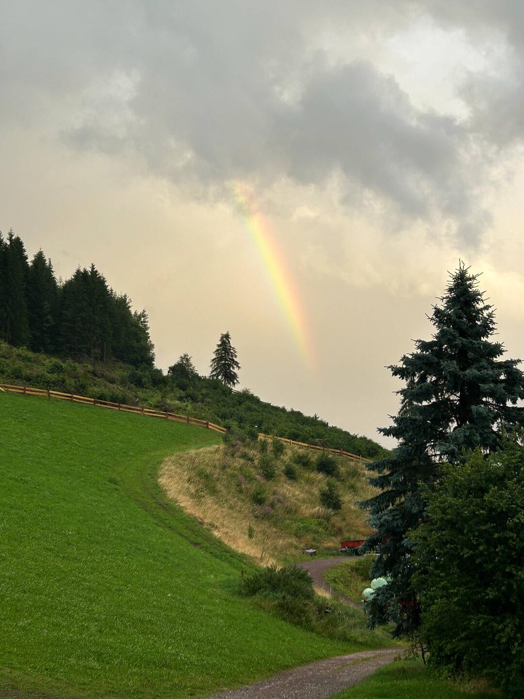 Zum Tagesabschluss gab es noch einen kleinen Regenbogen und später wieder freie Sicht auf unser Tal.