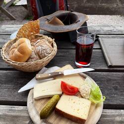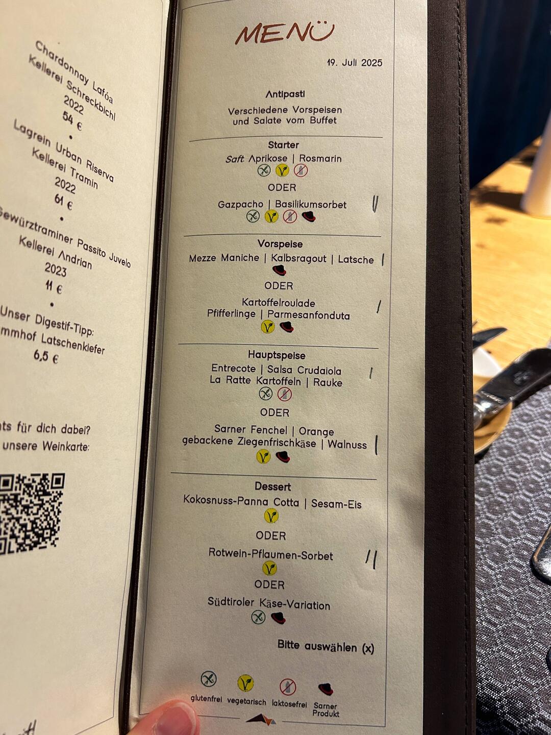 …aber wir haben es drinnen hübsch mit unseren Sarner Schmankerln. Draußen hat sich ein heftiges Gewitter im Tal verfangen. Auch ein Erlebnis!