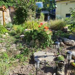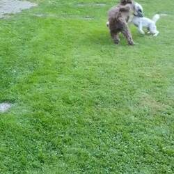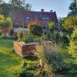 Elli kommt kurz nach uns Drei, die Hunde genießen es, im großen GartenLæs mere