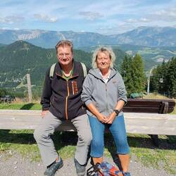 Sind pünktlich um 13 Uhr dort und treffen Gerald & Margit und auch Elli - ohne Hund.