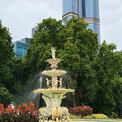 Danach ging es weiter zum Royal Exhibition Building und zum Melbourne Museum. Das Melbourne Museum ist eines der größten Museen der südlichen Hemisphäre und bietet umfangreiche Ausstellungen zur Naturgeschichte, Kultur, Wissenschaft und zur Geschichte der australischen Ureinwohner. Besonders eindrucksvoll ist die moderne Architektur, die sich harmonisch in den umliegenden Carlton Gardens einfügt. Im angrenzenden Park nutzten viele Einwohner der Stadt das schöne Wetter, um zu entspannen.
