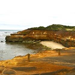 Ein besonderes Highlight entlang der Strecke war die London Bridge (heute offiziell London Arch). Diese markante Felsformation war ursprünglich ein Doppelbogen, der an die berühmte Brücke in London erinnerte. 1990 stürzte der vordere Teil unerwartet ein, während sich noch zwei Besucher darauf befanden – sie wurden glücklicherweise später per Hubschrauber gerettet. Heute steht nur noch ein einzelner imposanter Felsbogen im Meer, der dennoch ein eindrucksvolles Beispiel für die ständige Veränderung dieser Küstenlandschaft durch Wind und Wellen ist.