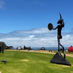 Im Anschluss führte uns die Route zu einem sehr schönen Weingut mit angeschlossenem Skulpturenpark. Eine Weinverkostung kam für uns leider nicht infrage, da in Australien eine strenge Promillegrenze von 0,05 % gilt. Stattdessen nahmen wir uns ausgiebig Zeit, durch den Skulpturenpark zu schlendern und die Kunstwerke inmitten der gepflegten Landschaft zu genießen.