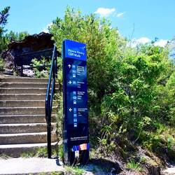 Während der Zug mühelos die 1017 Höhenmeter in die Blue Mountains erklomm, wurde klar, warum Katoomba im Original „fallendes Wasser“ bedeutet. Der Name verweist auf einen Wasserfall tief im Jamison Valley – und genau dorthin führte uns unser Weg.