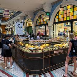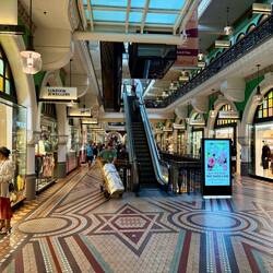 Anschließend erkundeten wir die Block Arcade, eine weitere historische Einkaufspassage im Herzen Melbournes. Sie wurde Ende des 19. Jahrhunderts im Stil europäischer Galerien erbaut und ist bekannt für ihre Mosaikböden, eleganten Boutiquen und traditionsreichen Cafés.