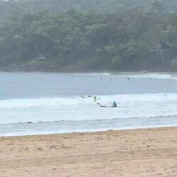 Noosa an der Sunshine Coast ist ein bekanntes australisches Urlaubsziel, berühmt für seine atemberaubenden Strände sowie das kristallklare Wasser. Leider für uns heute nur im Dauerregen zu sehen. Trotz des verregneten Wetters, bei circa 25°, sind einige Surfer sowie Kajaks auf dem Meer unterwegs. Und wir spazierten mit unseren Ponchos durch den Ort.