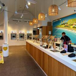 Bundaberg lag direkt auf unserem Weg. Der Store der Bundaberg Brewery ist bereits von außen ein echter Hingucker – gestaltet wie ein riesiges Bierfass. Im Inneren erwartete uns eine bunte Vielfalt an Ingwerbieren in etlichen Geschmacksrichtungen. Passend dazu lief gerade eine Verkostung, serviert in winzigen Becherchen, die glatt aus dem Geschirrschrank der „Sieben Zwerge“ stammen könnten.