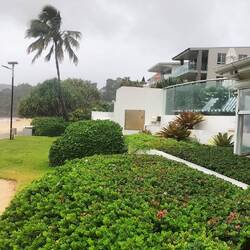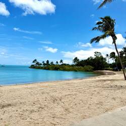 Von dort aus fuhren wir mit dem Bus vom südlichsten Ort der Insel bis ganz in den Norden nach Horseshoe Bay. Die Buslinie hat eine Länge von lediglich 10km. Eigentlich hatten wir vor, dort baden zu gehen, entschieden uns aber spontan für eine Kaffeepause in einem Café. Mit Blick auf das Meer genossen wir unseren Kaffee und warteten auf den nächsten Bus, mit dem wir wieder zurück in Richtung Hotel fuhren. In Alma Bay, 2km vor unserem Hotel,stiegen wir aus, um noch einen Abstecher in die dortige Badebucht zu machen. In der wunderschönen Alma Bay ließ sich Frank die Gelegenheit nicht entgehen und sprang ins Meer, um das Wasser und die Wellen bei angenehmen 31 °C Wassertemperatur zu genießen. Manuela hingegen verzichtete wegen ihrer Unsicherheit mit den Würfelquallen. Ohne Stingeranzug wollte sie nicht ins Wasser, obwohl in der Bucht viele andere Badende ohne Anzug im Wasser waren. Stattdessen freute sie sich schon auf den 34 °C warmen Whirlpool im Hotel. Wieder waren viele Sittiche in den Bäumen zu sehen.