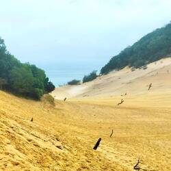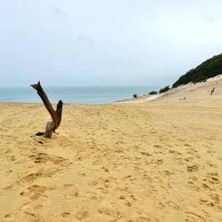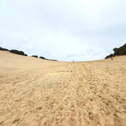 Stattdessen nahmen wir einen kurzen Wanderweg durch unberührte Natur, der uns zum Carlo Sandblow führte. Diese beeindruckende, wandernde Sanddüne schiebt sich langsam ins Landesinnere vor und eröffnet einen weiten Blick über Meer, Wald und Sandlandschaft. Die schiere Größe und die fast surreale Weite des Sandblows waren besonders eindrucksvoll und machten den Abstecher zu einem echten Highlight des Tages.
