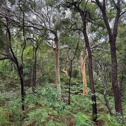 Entlang der Strecke tauchen immer wieder Bäume mit verkohlten Stämmen auf – stille Zeugen vergangener Buschbrände. Besonders die Grasbäume, die sogenannten Blackboys, zeigen ihre feuergehärteten Silhouetten. In Australien gehört Feuer zum Kreislauf des Lebens: Es vernichtet, aber es erneuert auch. Verkohlte Stämme, Pionierpflanzen, frisches Grün – ein Ökosystem, das aus der Asche wächst.