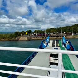 In Townsville angekommen, erreichten wir das Fährterminal. Da wir noch etwa 90 Minuten Zeit hatten, liefen wir ein wenig durch die Stadt. Der Eindruck war eher ernüchternd: viele leerstehende Geschäfte, Bettler, betrunkene Ureinwohner. Eine Stadt, die ganz offensichtlich schon bessere Tage erlebt hat und im Moment etwas müde wirkt.