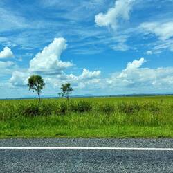 Etwa 50 Kilometer vor Airlie Beach lichtet sich der Himmel. Die Sonne bricht durch, Wasserdampf steigt wie feine Schleier von den Wiesen auf. Ein fast mystischer Moment nach all dem Regen.Read more