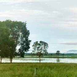 Auf halber Strecke führt die Straße nah ans Meer wie selten. Die Ebbe legt weite Flächen frei. Ein kurzer Blick, ein tiefes Durchatmen – dann weiter. Noch 250 Kilometer. Eine Strecke, die sich zieht wie Kaugummi. Die Landschaft wechselt zwischen endlosen saftig grünen Weiden und Wäldern, dazwischen immer wieder Rinderherden – kein Wunder, dass Rockhampton als Beef-Hochburg gilt. Doch die Idylle wird immer wieder von schweren Regenfronten zerschnitten. Schwarze Wolken hängen an den Bergen fest, und der Regen prasselt so heftig, dass er auf der Straße steht. Felder verwandeln sich in Seen. Die Fahrt wird zur Herausforderung, der Fahrer bleibt ruhig – zum Glück.