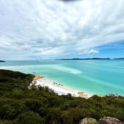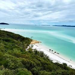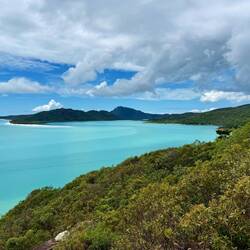 Nach knapp zwei Stunden erreichen wir Whitsunday Island. Der Aufstieg zu mehreren Aussichtspunkten fordert bei tropischer Schwüle seinen Tribut – Wasserflaschen werden zu wertvollen Begleitern. Doch oben angekommen verschlägt es allen die Sprache:
