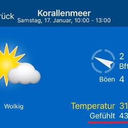 Für heute hatten wir einen Rundflug über das Great Barrier Riff gebucht. Fünf Minuten vor der geplanten Abholzeit kam jedoch die Nachricht, dass der Flug wetterbedingt abgesagt wurde. Hmmm 🤔 – das soll einer verstehen. Die Sonne lachte, kein Regen, kein Gewitter, lediglich Wind der Stärke 4. Sogar einen Hubschrauber sahen wir vorbeifliegen. Nun hoffen wir auf morgen Vormittag. Wir werden sehen.