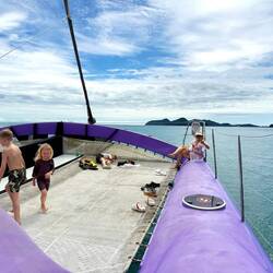 Der Katamaran nimmt Kurs auf Airlie Beach. Die Sonne sinkt, der Wind wird milder, und die Inseln gleiten langsam zurück ins Abendlicht.Read more