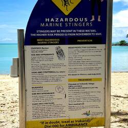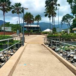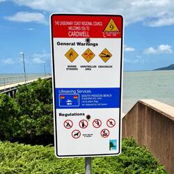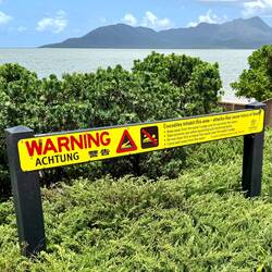 Direkt gegenüber dem Café befand sich eine Seebrücke, an der wir erstmals Warnschilder vor Krokodilen entdeckten. Diese Hinweise an die Wildnis Queensland's waren eindrucksvoll und erinnerten uns daran, wie nah wir der Natur waren.