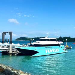 Der letzte Stopp bot noch einmal eine kurze Pause für ein Eis oder einen Kaffee im K’gari Beach Resort. Der Busfahrer spritzte in der Zeit den Bus rasch ab, um das Salz von der Strandfahrt zu entfernen und füllte die Reifen wieder auf. Am Strand wird mit reduziertem Druck gefahren. Dann ging es wieder Offroad zurück zur Fähre, die uns in etwa 45 Minuten wieder ans Festland nach Hervey Bay brachte. Das Wetter meinte es den ganzen Tag über gut mit uns – kein Regen, nur Sonnenschein. Wieder ein besonderer Tag, der sicher lange in Erinnerung bleiben wird.