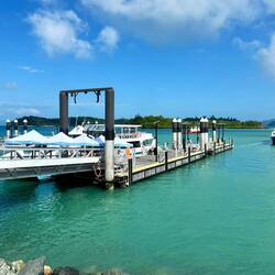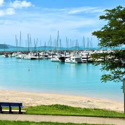 Danach ging es um die Ecke zum Yachthafen. Dort fanden wir ein Café mit herrlichem Blick auf die Boote und nutzten die schöne Kulisse für ein wohlverdientes kaltes Getränk. Im Anschluss steuerten wir noch einige weitere Aussichtspunkte an. Schließlich landeten wir am Shute Harbour, von dem aus Verbindungen nach Hamilton Island angeboten werden. Leider waren wir zu spät für eine Hin- und Rückfahrt.