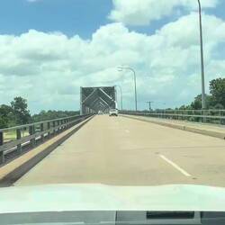 Unser langer Turn Richtung Rockhampton startete nun. Zunächst führte die Strecke über eine Landstraße, später über den Highway. Queensland blieb seinem Bild treu: grün, sanft hügelig und bewaldet. Wir überquerten zahlreiche Creeks und Flüsse, die trotz der Regenfälle der letzten Tage eher wenig Wasser führten. Elektronische Anzeigetafeln informierten über die Befahrbarkeit der Straßen – wie auch auf Skipisten. Heute stand alles auf Grün.