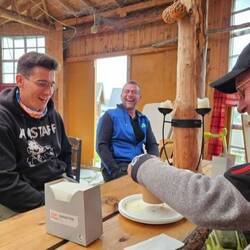 Traditionell Norwegisch , an einer augenscheinlich nicht aufregenden Imbiss Bude. Man sollte sich hier aber nicht vom schein trügen lassen , das Essen war nämlich super , das Personal Mega freundlich und das Ambiente beim Essen der Hammer 😊 Fischsuppe, Fisch und Rentier. Tom unser Koch hat für uns noch den Zungenbrecher gelernt...Fischer's Fritze fischt frische Fische usw.... Aufgabe auch erledigt und notiert 👍Baca lagi
