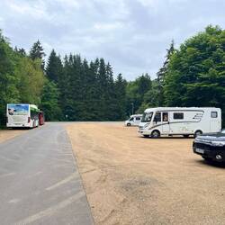 Werner hatte Lagerkoller und wollte unbedingt das Womo bewegen. Nun stehen wir in Blankenheim auf einem neu gemachten Platz mit gelbem Schottersanduntergrund.