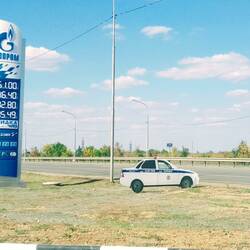 Auf dem Weg nach Wolgograd haben wir viele Polizei-Auto-Attrappen aus Blech in Echtgröße gesehen. Das ist so witzig. Man sieht sie von weitem, erschrickt, weil man ein Polizeiauto erkennt undBaca lagi