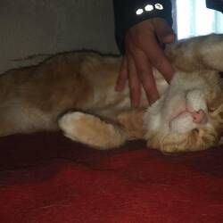 Eine dicke Katze lag auf einer Decke auf dem warmen Ofen und genoß ihr Leben.
