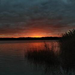 Ein wunderschöner Sonnenuntergang bei unserem Schalflager am See