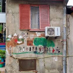 Ich sehe aber noch einen anderen Zusammenhang, und wenn der stimmt, dann frustriert mich das richtig. Es gibt so viele schöne alte Häuser hier. Und in vielen Straßen auch wunderbare alte Bäume. Aber die meisten dieser Häuser sind nur noch Wracks, anders kann man das nicht bezeichnen. Klar, in der Sowjetzeit ist hier wie überall sonst alles verfallen, aber die liegt nun schon 35 Jahre zurück. Nach dem Zusammenbruch der Sowjetunion gab es hier zunächst eine tiefe Krise, aber auch die ist schon länger überwunden. Geld ist da, das sieht man auch an den Autos, die hier herumfahren. Es ist zwar nicht wie in München, mit all den Luxuskarossen, aber mit Bremerhaven kann sich der Autobestand in seiner Qualität messen. Ich vermute nun, dass die Kosten dieses Autobestands so hoch sind, dass für die Renovierung der Häuser einfach nichts mehr übrig bleibt. Das durchschnittliche Einkommen in Georgien liegt bei etwas über 500€, wie will man davon ein modernes Auto finanzieren und nebenbei noch sein Haus renovieren? Man sieht die Prioritäten, das Auto ist der Götze der Neuzeit und absolut heilig. Alles andere muss da eben zurückstehen.