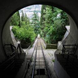 Heute morgen ein Ausflug auf einen der Berge, die hier sehr nah an der Innenstadt liegen. Auf diesen Berg kommt man per Standseilbahn, zwei Wagen auf Schienen, die an einem gemeinsamen Seil hängen. Sie fahren immer gleichzeitig, der abwärts fahrende Wagen zieht den aufwärtsfahrenden hoch, so dass man nur den Gewichtsunterschied durch einen Motor ausgleichen muss. Die Talstation liegt ganz bei uns in der Nähe, so das wir zu Fuß hin laufen können.