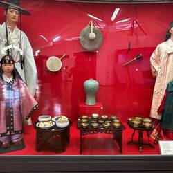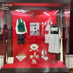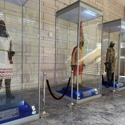 In den weiteren Ausstellungen ging es um neuere Geschichte. Interessant war eine Serie von Vitrinen, in denen Kleidung und verschiedene Objekte von Bevölkerungsgruppen gezeigt wurden, die hier leben und oft nicht freiwillig hergekommen sind. Es waren insgesamt 19 Vitrinen, darunter Deutsche, Polen, Ukrainer, Belarussen, Russen, Juden und auch Koreaner.Les mer