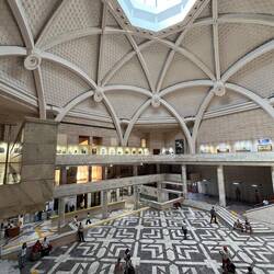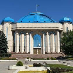 Heute waren wir im Zentralen Staatlichen Museum der Republik Kasachstan. Das ist das große Haus neben unserer Unterkunft, wir mussten also nicht weit laufen. Leider war wieder das Fotografieren mit richtiger Kamera verboten. Die haben noch nicht bemerkt, dass man heutzutage mit Smartphones exzellente Bilder machen kann. Das Gebäude selbst ist von 1985, also noch aus sowjetischer Zeit. Es ist groß und wirkt ziemlich modern.