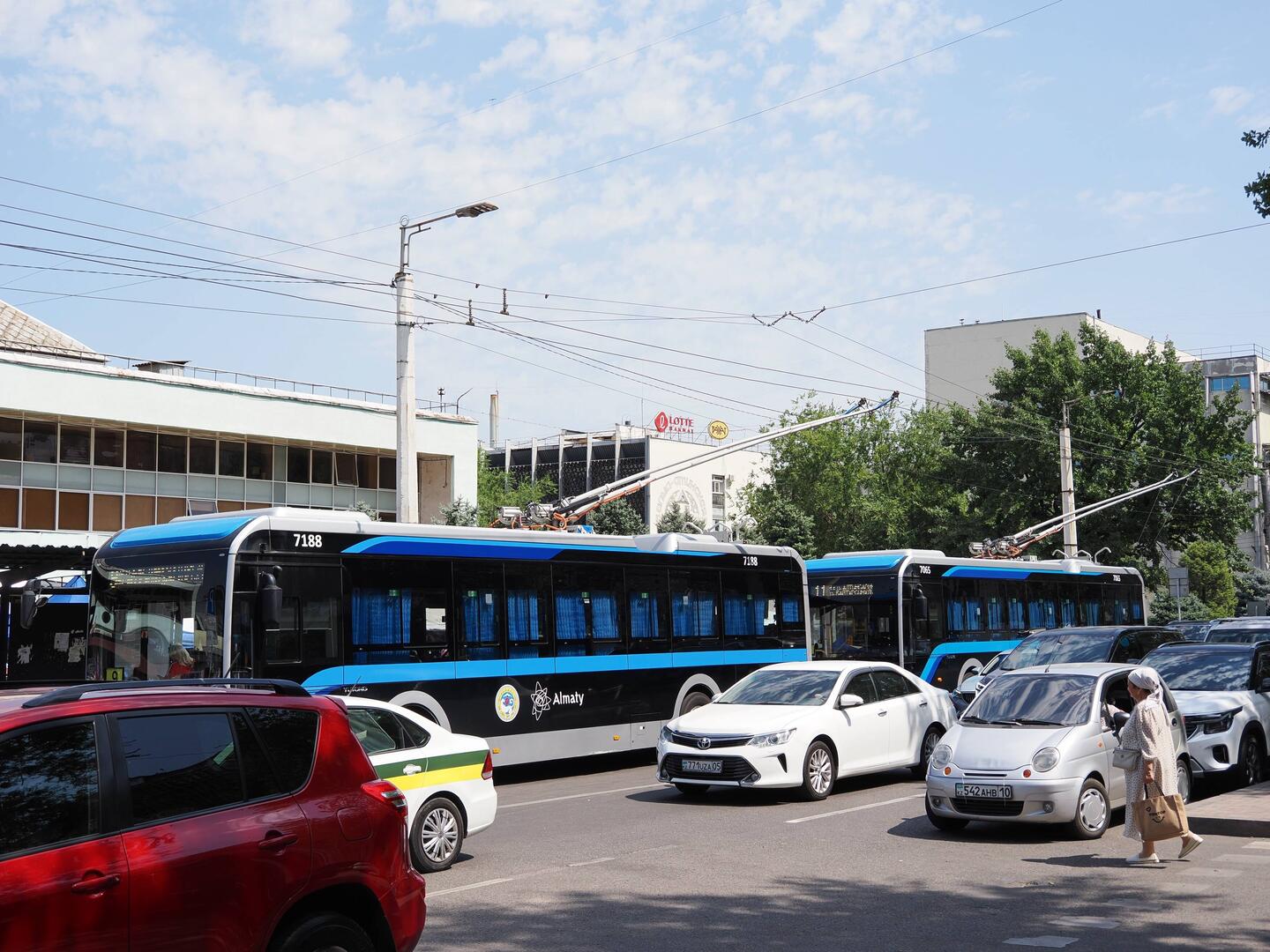 Es gibt eine große Zahl von Buslinien. Auch ein paar O-Buslinien, wovon ich ja ein großer Fan bin. Die Dokumentation über das Bussystem ist, wie auch in Usbekistan und Georgien stark verbesserungswürdig. Die Haltestellen an der Straße haben ein Dach und sind so erkennbar. Das war in manchen Städten in Usbekistan schon nicht immer so. An vielen Haltestellen fehlt aber jedwede Information. Man weiß nicht, welche Linien hier lang fahren und auch nicht wie oft. Ein fester Fahrplan ist bei Bussen, die mit den Autos im Stau stehen sowieso ein frommer Wunsch. Deshalb wäre es ideal, wenn sie alle 5 bis 8 Minuten fahren. Das geht nur, wenn das System von genügend vielen Menschen genutzt wird und das geht mit zunehmenden Autoverkehr verloren.