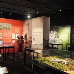 Dann gab es noch drei Dauerausstellungen. Eine zeigte die Geschichte der Northern Territories, deren Hauptstadt Darwin ist, seit dem späten 19. Jhdt. Neben Europäern und Aborininee gab es noch eine große Chinesische Minderheit, die während eines Goldrausches in den 1870er Jahren hergekommen waren. Die wirtschaftliche Situation war lange sehr schwierig. Erst mit besseren Transportmöglichkeiten in der Luft und auch zu Land wurde es besser.