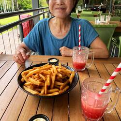 Hier müssen wir uns wohl wieder daran gewöhnen, dass die Preise plötzlich höher sind und dass die Portionen beim Essen viel größer ausfallen. Wir wollten einfach Pommes, also bestellten wir zu zweit eine große Portion – die war am Ende viel zu viel. Aber unglaublich lecker. Ganz anders als die Pommes, die wir in München gegessen hatten. Was machen sie hier bitte anders, dass das gleiche Essen so viel besser schmeckt?