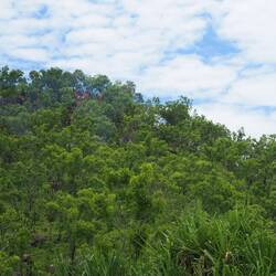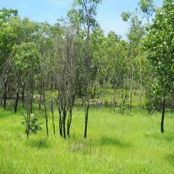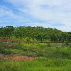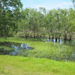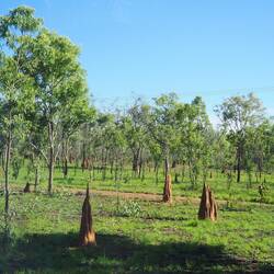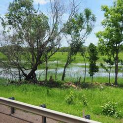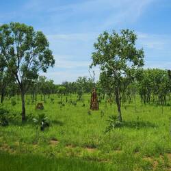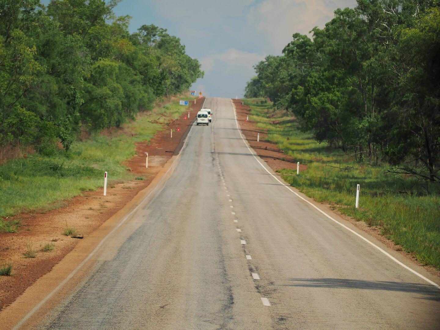 Ich hatte erwartet, dass die Landschaft nicht allzu weit hinter Darwin anfängt trocken zu werden. Weit gefehlt, bis die Sonne unterging fuhren wir durch eine grüne baumbestandene Landschaft.