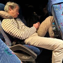 Zwei Fahrer fuhren im Vier-Stunden-Takt im Wechsel. Der Fahrer, der gerade nicht dran war, schien sich im kleinen Schlafabteil neben der Toilette hinten im Bus auszuruhen.