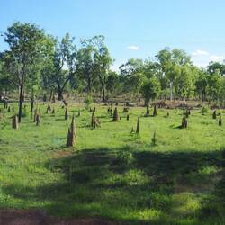 Besonders angetan haben es mir die Termitenhügel. Ich wollte unbedingt ein paar schöne Fotos davon machen. Aber der Bus fährt 100 km/h, die Landschaft fliegt vor dem Fenster vorbei. Ich habe mittlerweile Einstellungen an meiner Kamera, mit denen ich trotzdem einigermaßen brauchbare Bilder machen kann. Aber das Ergebnis ist immer zufällig. Man muss ziemlich viele Bilder machen, damit ein paar brauchbare dabei sind.