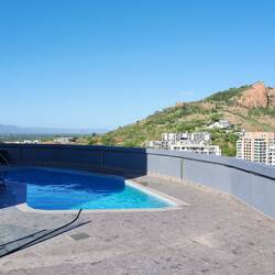 „Sie müssen unbedingt unseren Pool auf dem Dach probieren, der ist ganz besonders. Wir sind hier das höchste Gebäude der Stadt.“ meinte der Mann an der Rezeption. Unser Hotel haben wir pragmatisch ausgesucht. Es liegt günstig und ist günstig, zumindest für australische Verhältnisse. Es ist aber auch ein rundes Haus und hat im 20. Stock einen Pool. Dort hat man auch eine tolle Aussicht auf die ganze Stadt.