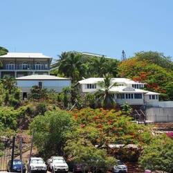 Townsville ist eine Industriestadt, in der man aber sicher gut leben kann. Auf dem Coverfoto ist alles drauf, was man so braucht. Main street, Villen am Berg, die Werft, die Arbeit gibt. Und was unten aussieht wie eine Kirche, ist die lokale Brauerei. Hinter dem Berg liegt der Strand. Wir wollten heute nach der langen Fahrt nur entspannen. Morgens etwas im Pool gebadet und gegen Mittag sind wir dann losgezogen in Richtung Strand. Unterwegs dorthin habe ich wahllos Häuser fotografiert.