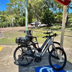 Man kommt in 20 Minuten mit einer Personenfähre ab Townsville zur Insel. Wer sein Auto mitbringen will, muss die langsamere Autofähre nehmen. Entlang der Bays gibt es eine Straße, auf der auch Busse fahren. Wir haben uns aber E-Bikes geliehen. Ich dachte mir, dass das auch mal eine gute Gelegenheit ist, am Linksverkehr teilzunehmen. Es ist nur wenig Verkehr hier. Und für Hea-Jee eine Gelegenheit, mal ein E-Bike auszuprobieren. Außerdem waren wir so etwas flexibler.