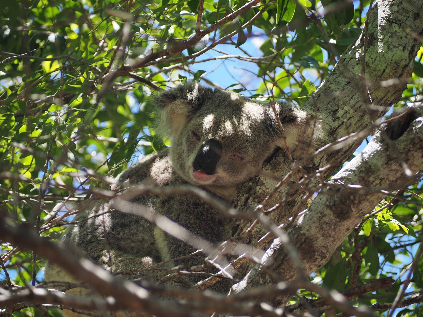 Zufälligerweise sind wir einem anderen weltreisenden deutschen Paar begegnet, Özlem und Kaan, mit denen wir ins Gespräch gekommen sind. Kaan hat uns einiges über Koalas erzählt. Z.B., dass unsere Geräusche die Tiere überhaupt nicht stören. Das konnten wir dann selber beobachten, als wir in 2m Entfernung von einem Tier 20 Minuten lang gequatscht haben und das schlafende Tier sich nicht mal bewegt und seinen Schlaf unterbrochen hat.